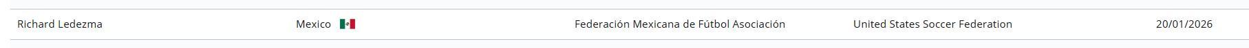 据国际足联球员会籍转换系统显示,墨西哥归化了25岁边卫莱德斯马。