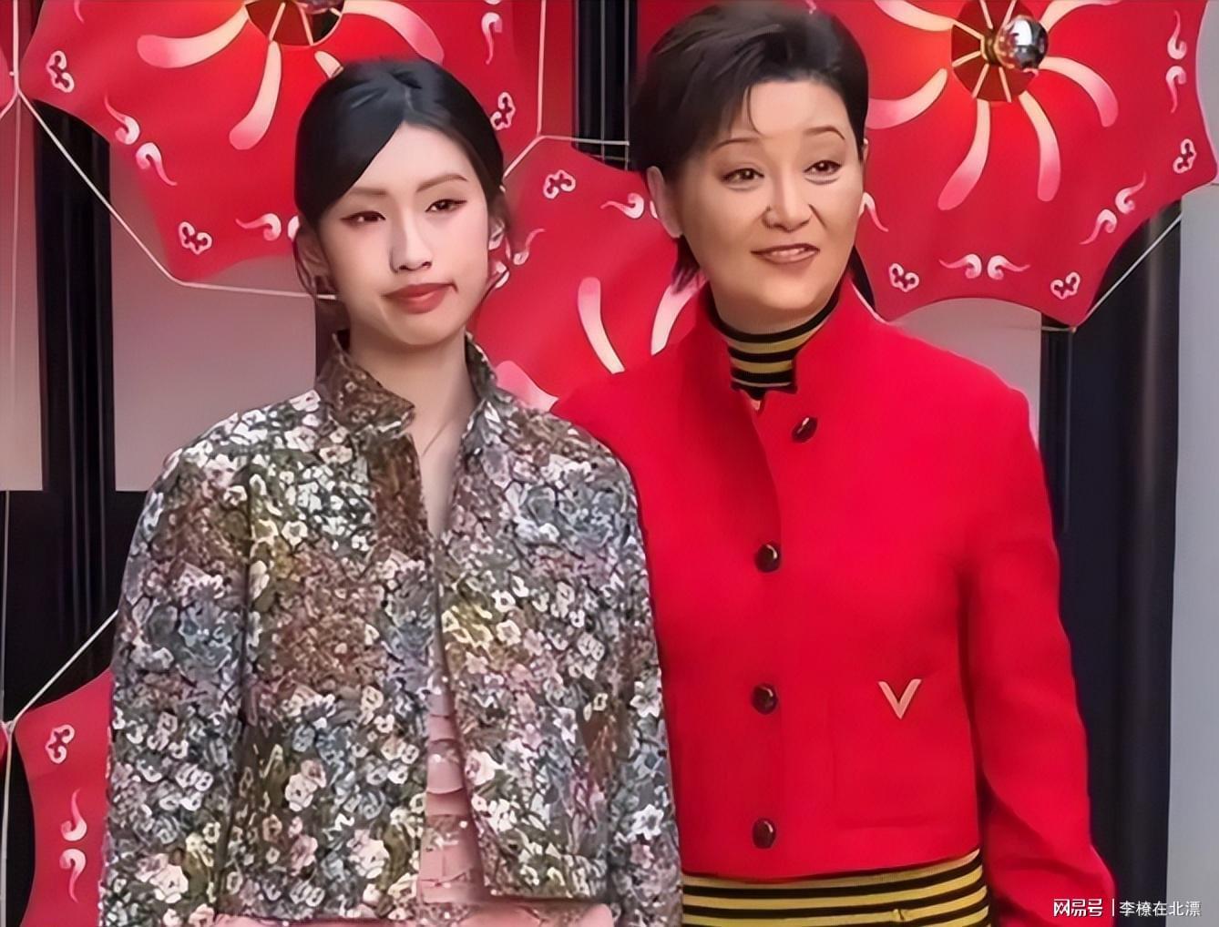 再看娘俩真就不在一个图层,徐女士一身得体大方,看起来就像是来现场逛街的,而小朵则是一身亮片装,看起来不要太花哨,妥妥的网红风。