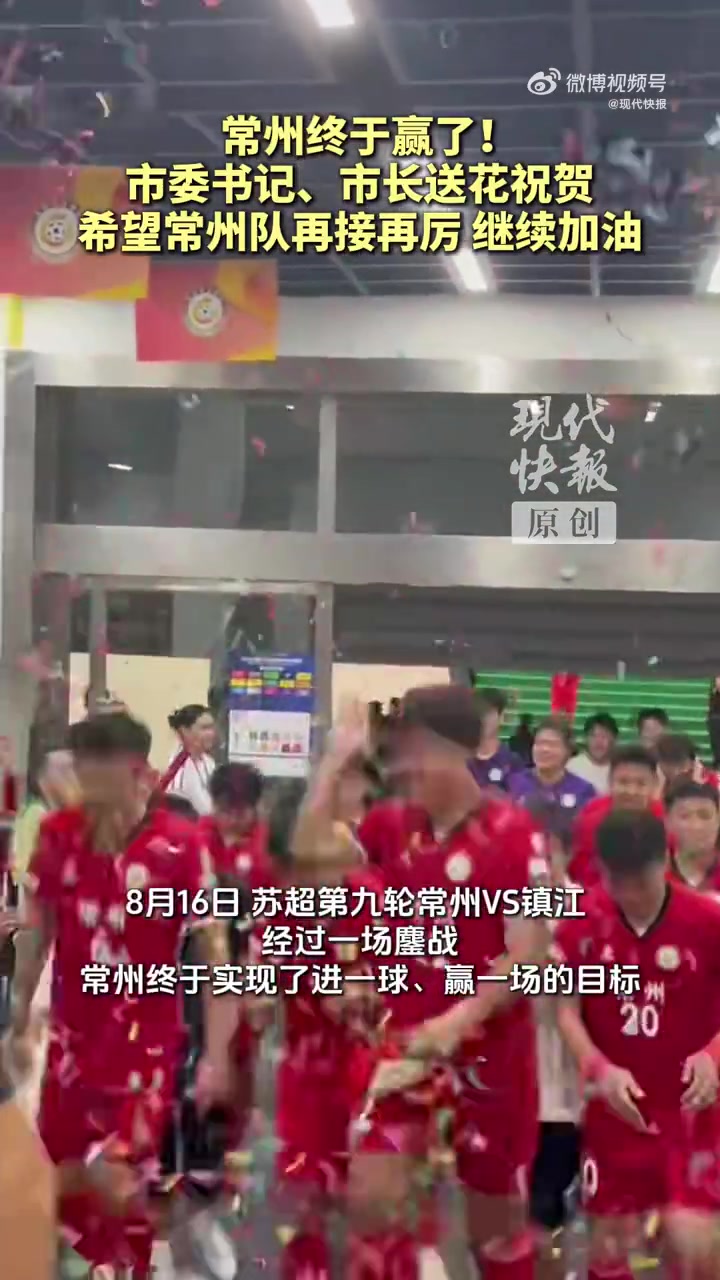 8月17日讯 江苏省城市足球联赛第9轮,常州队1-0击败镇江队,获得赛季首球+首胜。据《现代快报》报道,赛后,常州市委书记王剑锋、市长周伟为球员和教练送花祝贺。