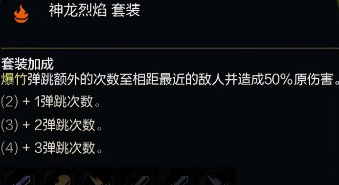 套装加成:爆竹弹跳额外的次数至相距最近的敌人并造成50%的伤害