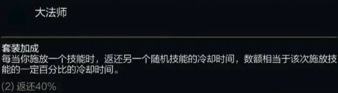 套装加成:每次你施放一个技能时,会以该技能冷却时间的百分比返还另一个随机技能